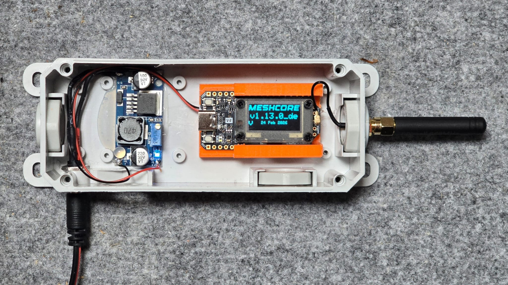 - Gerät konfigurieren: Der Node wird über die MeshCore-Software eingerichtet, die automatisch die Verbindung zu bestehenden Nodes und Repeatern herstellt.